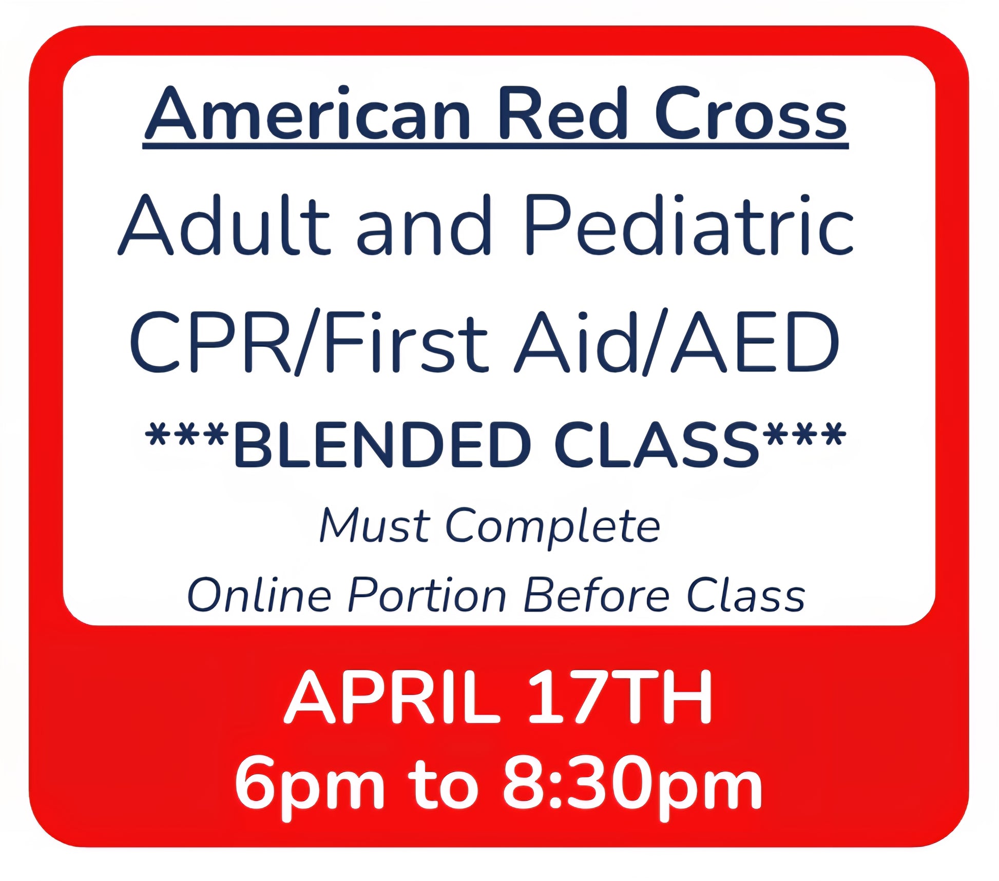 Fri, April 17th - 6pm to 8:30pm - Classroom Session for BLENDED Online+Classroom -- Adult and Pediatric CPR/First Aid/AED