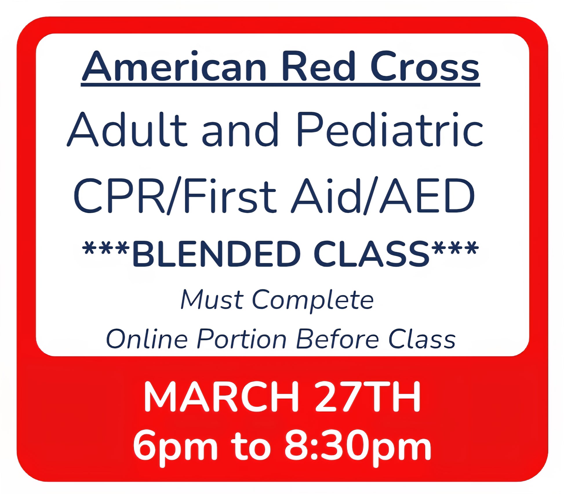 Fri, March 27th - 6pm to 8:30pm - Classroom Session for BLENDED Online+Classroom -- Adult and Pediatric CPR/First Aid/AED